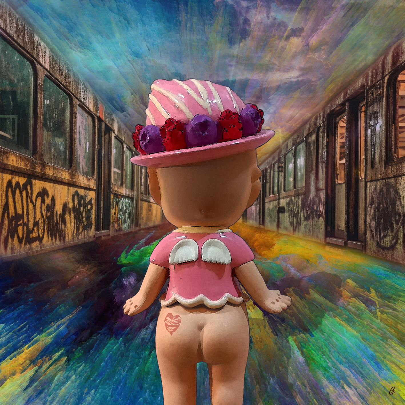 Format 60X60cm, technique mixte, assemblage de différents éléments, mise en couleur, prises de vues, peinture et montage numérique.
