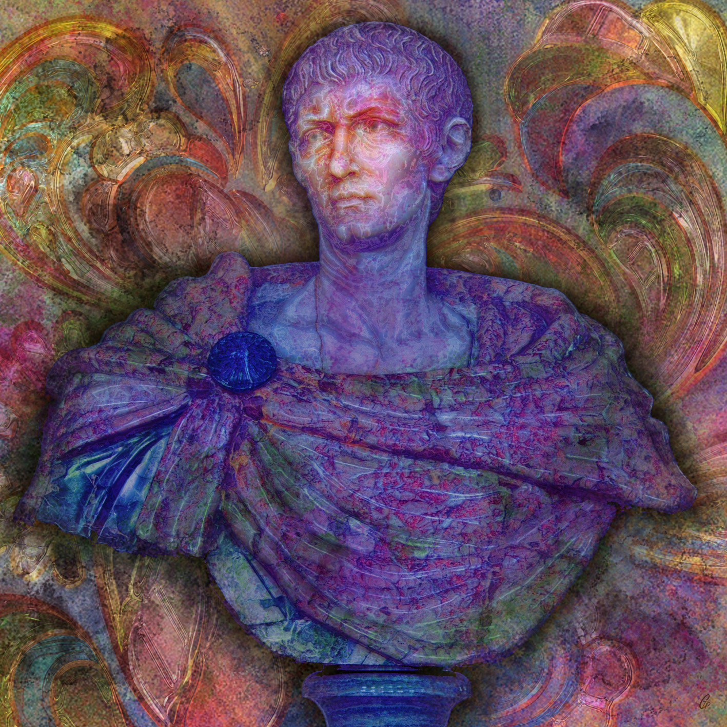 Format 60X60cm, technique mixte, assemblage de différents éléments, mise en couleur, prises de vues, peinture et montage numérique.